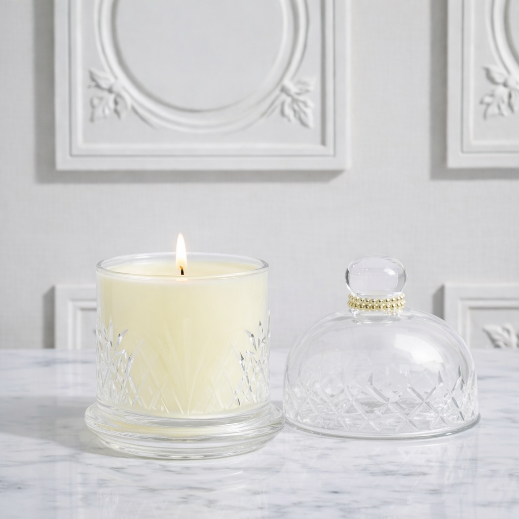 • 3 oz | 3"W x 3.75" H | crystal-cut glass, removable dome | 100% cotton wick