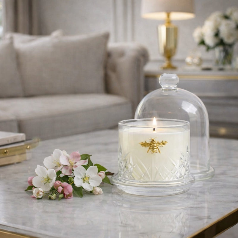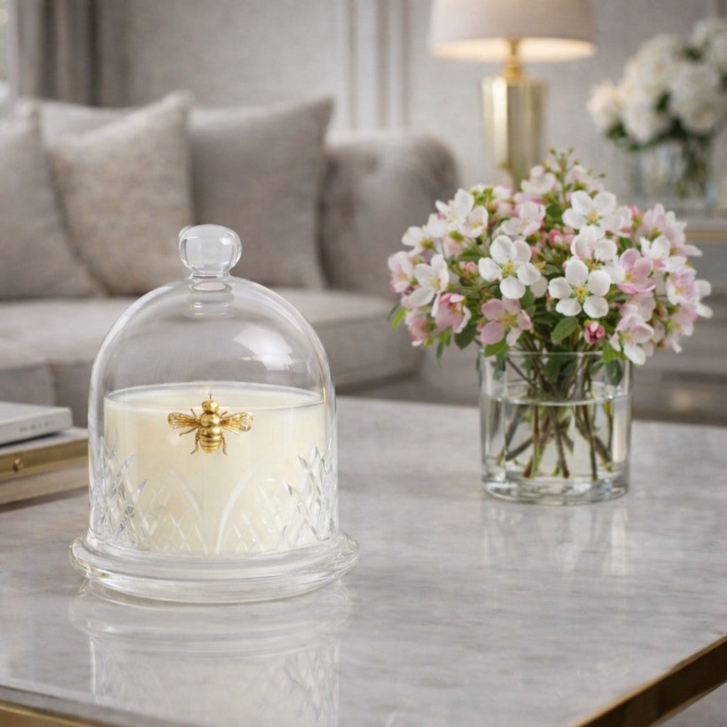 The Royal Extract Dome Candle, a limited-edition candle that adds unexpected charm with a touch of elegance. Our Royal Extract scented candle is housed beneath a crystal-cut glass dome, keeping it beautifully cloaked, preserving the fragrance and finish until the moment it is lit and enjoyed.