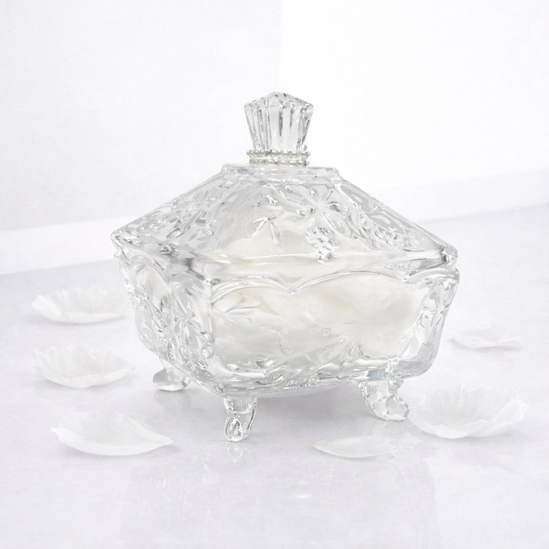 Premiere Dusting Silk Body Powder delicately scents, soothes, and softens skin. Offered in our elegant crystal powder jar adorned with artisan Premiere pearls, the petite powder puff delicately applies dusting silk powder to your skin.